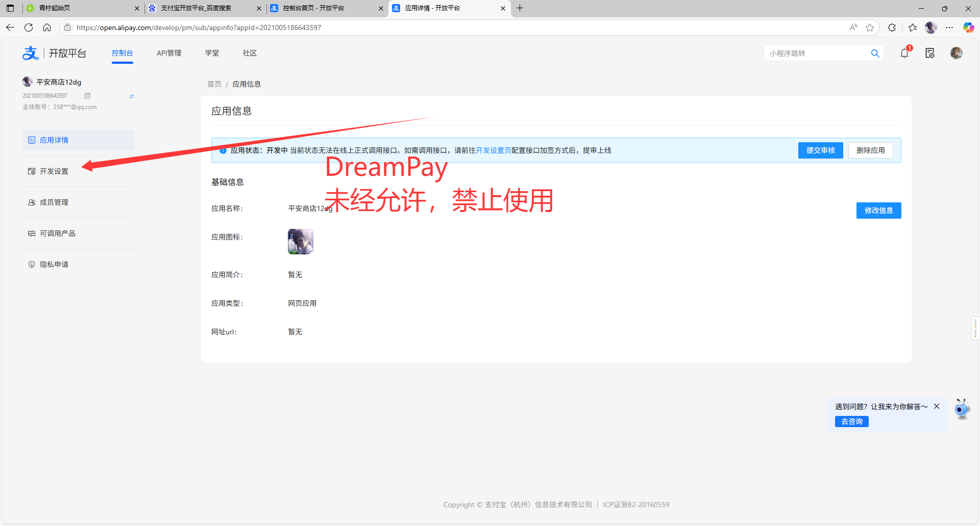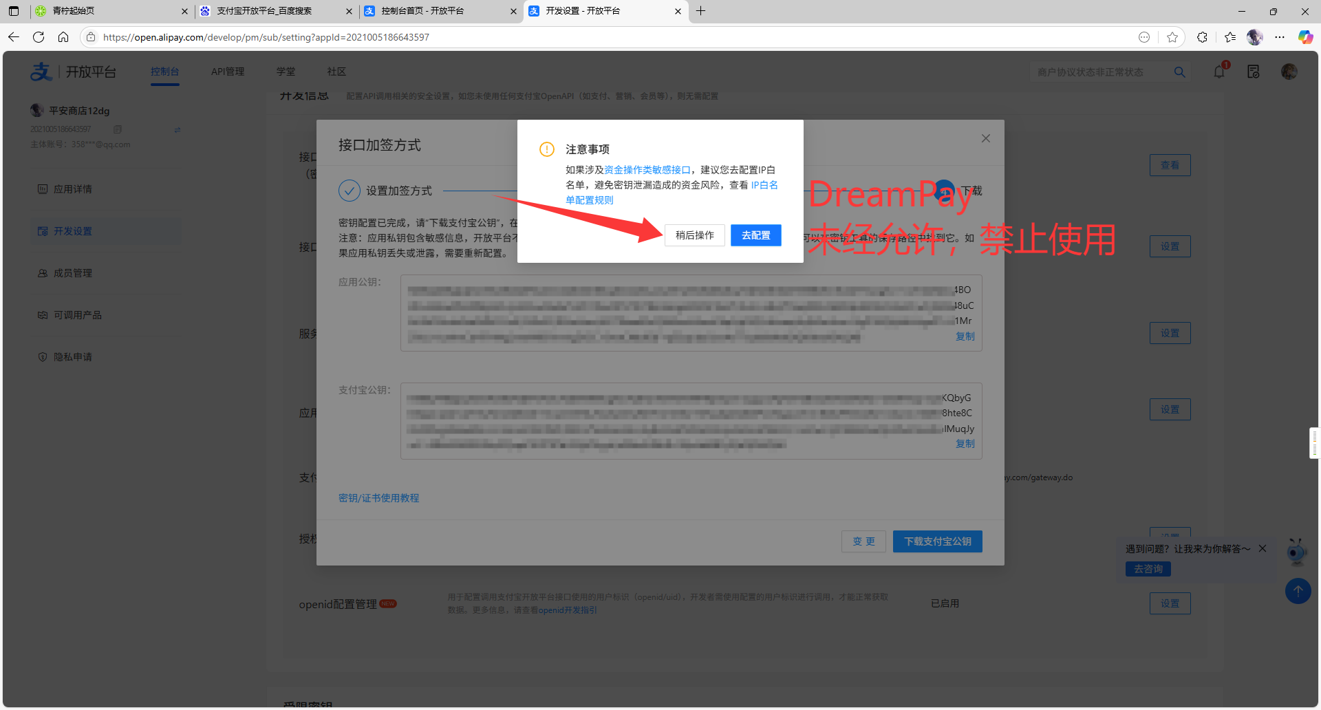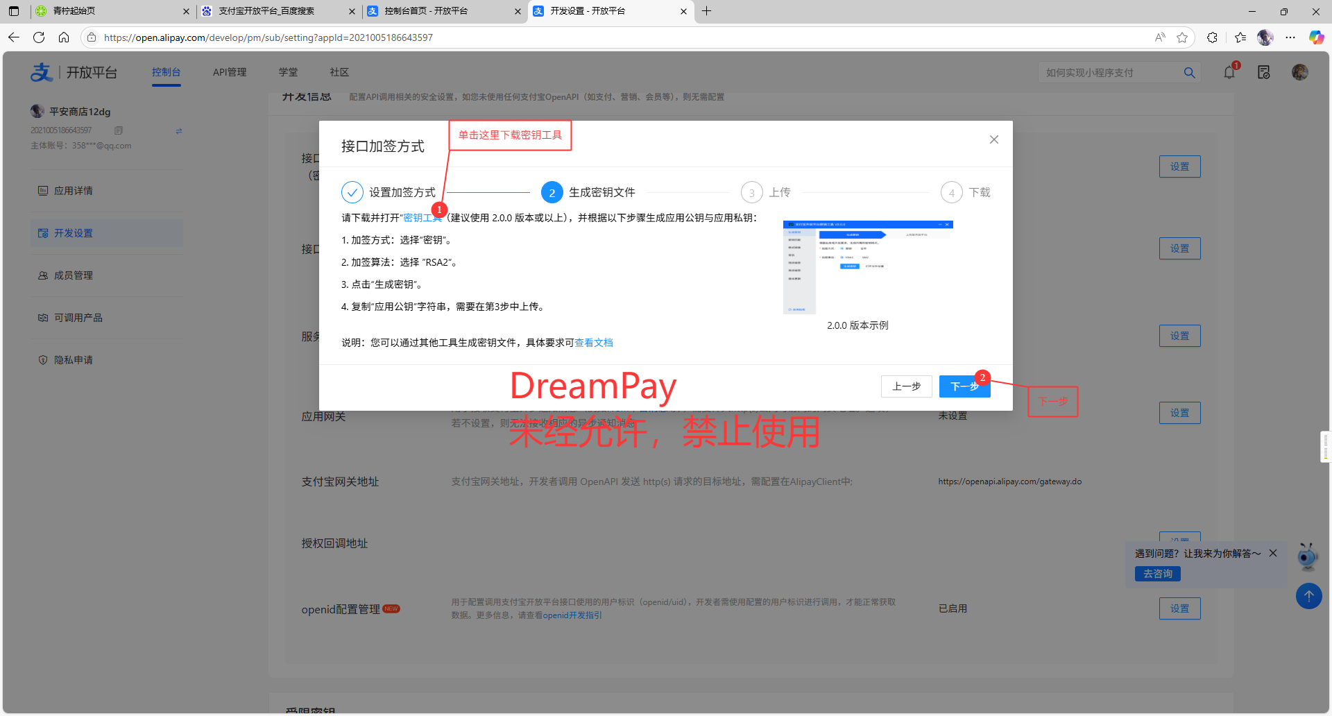 本文介绍了DreamPay支付宝账单查询功能的配置教程。该功能基于支付宝开放平台,具备永久在线的优势,但申请流程相对复杂。教程详细指导了从进入开放平台、创建应用到配置密钥和提交审核的完整步骤,并提醒用户需等待审核通过后方可使用。