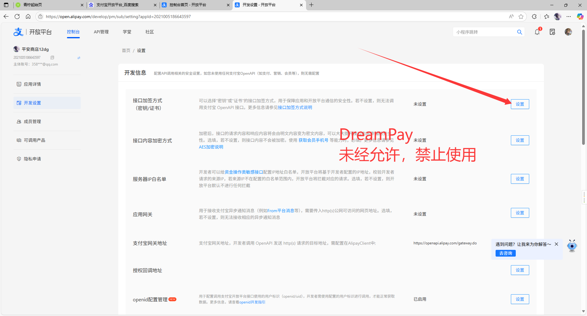 在“接口加签方式(密钥/证书)”那一栏单击设置