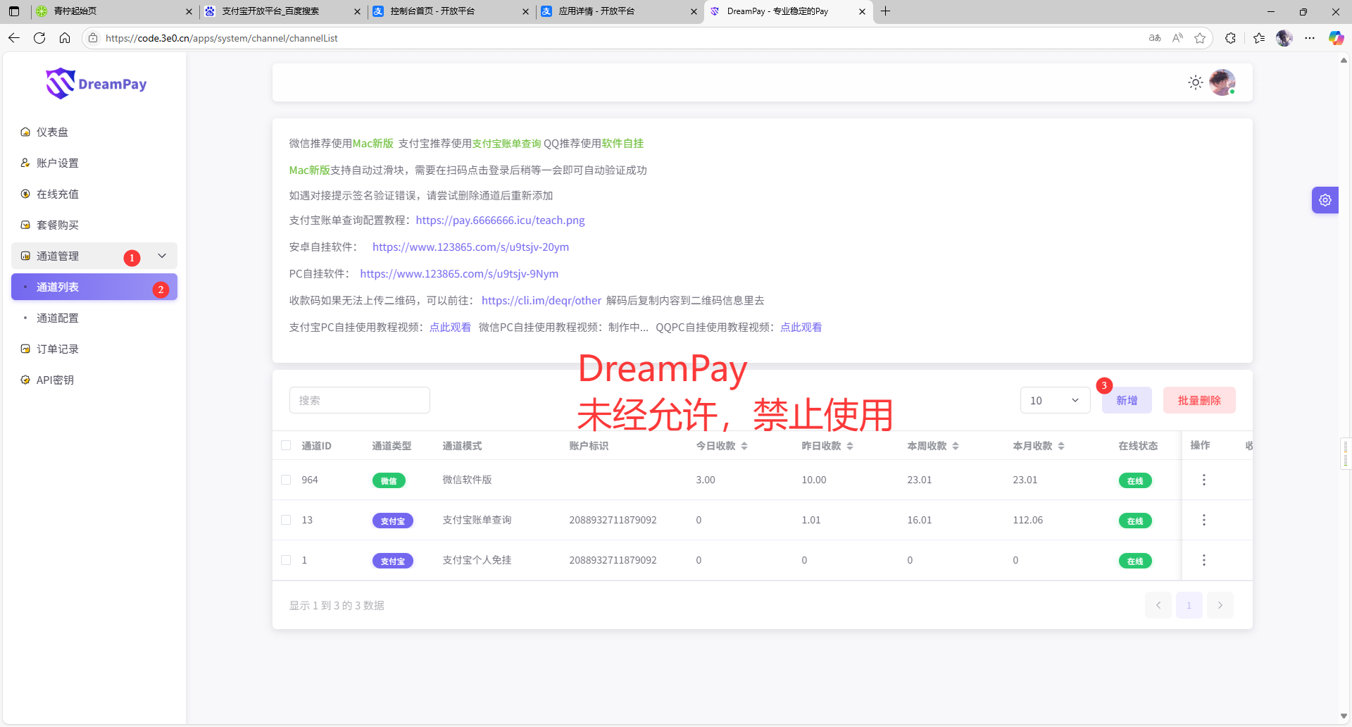 在新平台的用户后台单击“通道管理”->“通道列表”->“新增”